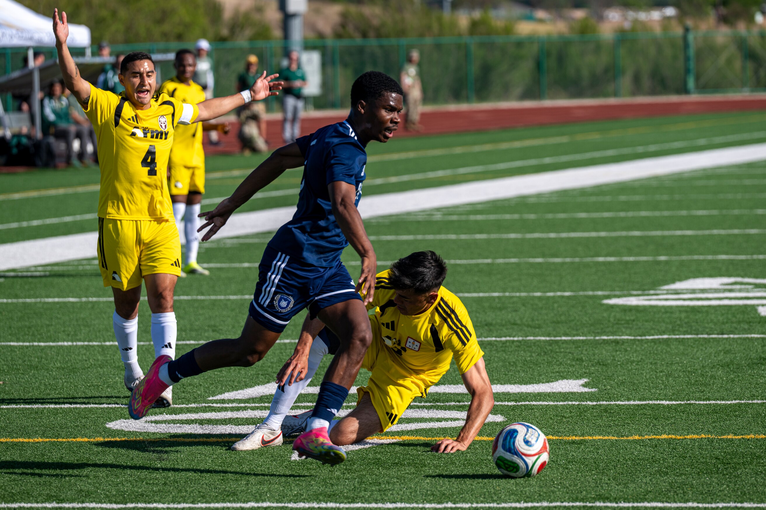 PHOTOGRAPHER VISION ID: WO188 U.S. Navy Petty Officer 2nd Class Jaden Joseph, assigned to NB Kitsap, WA, collides with U.S. Army SSG Alan Ibarralepe, assigned to Fort Lee, VA, during the 2026 Armed Forces Men’s Soccer Championship at Phantom Warrior Stadium on Fort Hood, Texas, Mar. 30, 2026. Service members competed in soccer for championship honors while representing their respective services. The Armed Forces Sports program brings together service members from the Army, Marine Corps, Navy (with Coast Guard athletes), and Air Force (with Space Force athletes) to compete at the national level. Armed Forces Sports promotes physical fitness, provides competitive opportunities for military athletes at national and international levels, supports recruitment and retention efforts, and strengthens partnerships through sports diplomacy. (U.S. Armed Forces Sports photo by Mass Communications Specialist 2nd Class Chase Sealey)